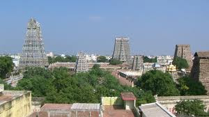 The Meenakshi temple complex at Madurai is a city temple. It has eminent and exquisitely carved towers enveloping the temple, dedicated to Goddess Meenakashi in Madurai. Considered as the south gateway, the Meenakshi temple consists of the twin temples of God Shiva and Goddess Meenakshi, each one as high as about nine storeys.